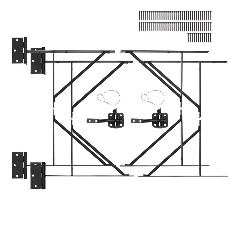 Tämä metallinen portin kulmatukisarja ehkäisee portin painumista ja haurastumista ja sopii jopa 99% markkinoilla olevista ovityypeistä. Rakenne on säänkestävä ja suojaa ruosteelta ja korroosiolta, joten se soveltuu pitkäaikaiseen ulkokäyttöön eri tyyppisissä ja kokoisissa porteissa.