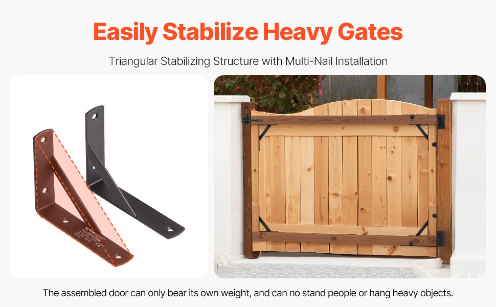Kolmiomaisen tukirakenteen ja joustavien hitsattujen saranoiden ansiosta kulmatuki parantaa kantavuutta ja pitää portin tukevasti paikoillaan, jotta portti toimii normaalisti pitkällä aikavälillä.