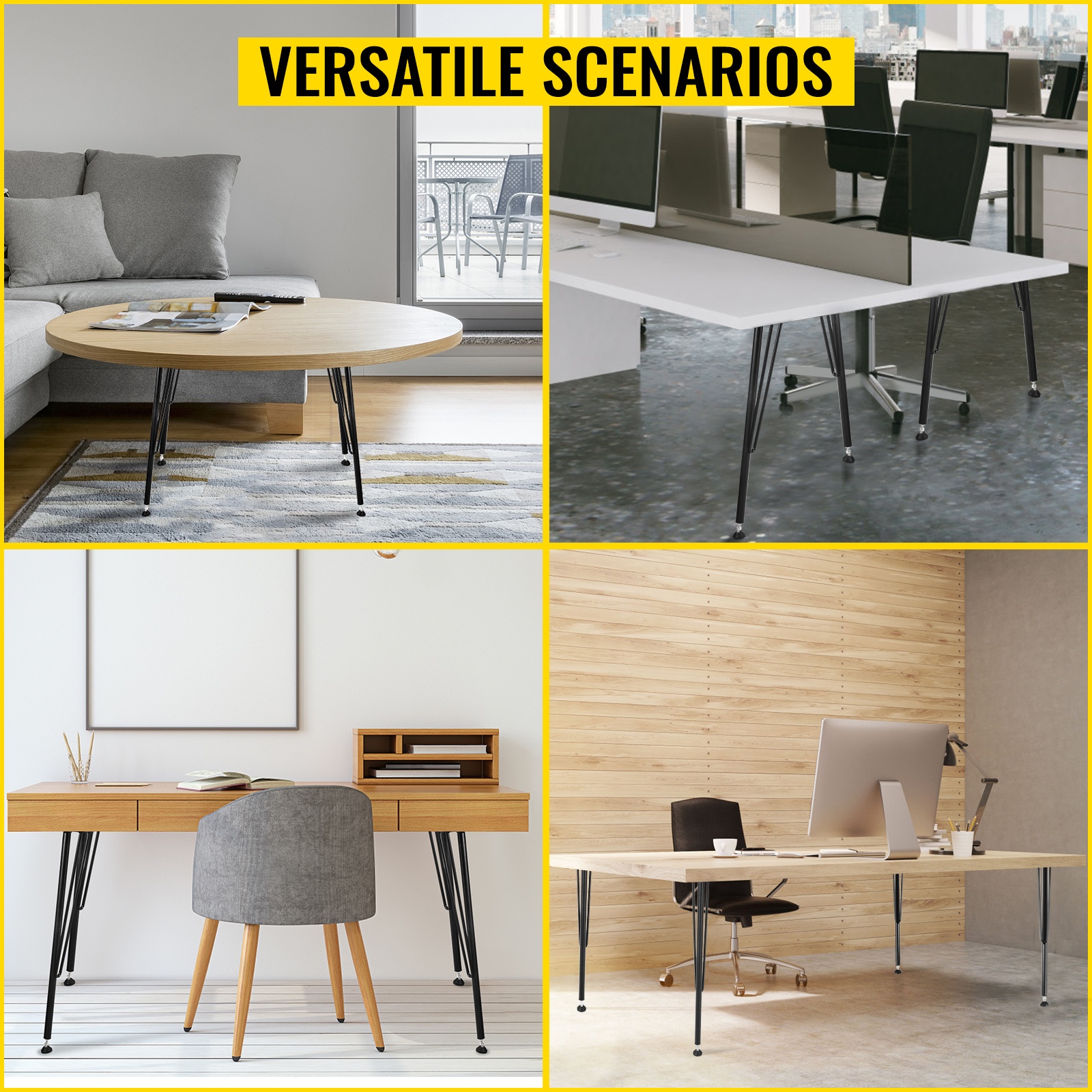 Hiusneulapöydän jalat 101,6 senttimetriä neljän kappaleen sarja hiiliteräs musta kolmitankoiset