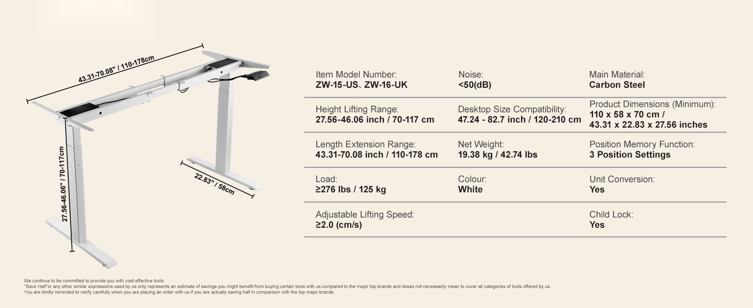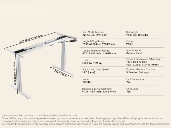 - Sopiva pöytälevyn pituus: 39.4–71 inch / 100–180 cm