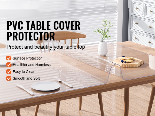 Suojaava, läpinäkyvä pöydänsuojus auttaa pitämään ruokapöydän, työpöydän tai sohvapöydän pinnan hyväkuntoisena arjen käytössä. Kirkas PVC-suoja säilyttää pöydän ulkonäön, mutta suojaa sitä roiskeilta, naarmuilta, kuumuudelta ja kulumiselta.