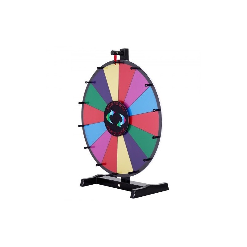 Tämä 18-tuumainen pöytämallinen onnenpyörä on monikäyttöinen ratkaisu liikkeisiin, messuille, tapahtumajärjestäjille ja viihdetiloihin. Muokattavat kentät, sulava pyöriminen, selkeä naksuva ääni ja mukana tulevat tarvikkeet tekevät siitä toimivan välineen peleihin, arvontoihin ja kampanjoihin.