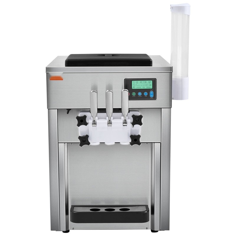 Pöytämallinen pehmytjäätelökone 1800W 20 l/tunnissa 2×4 l säiliöt ruostumaton teräs