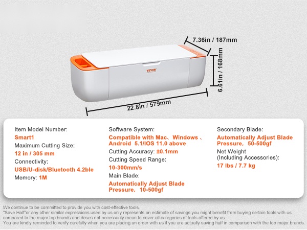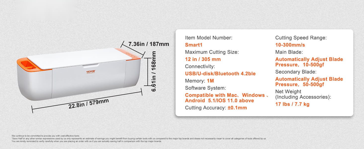 Pöytämallinen vinyylileikkuri Bluetoothilla 305 mm leikkausalue yli 100 materiaalille automaattinen teränpaineen säätö