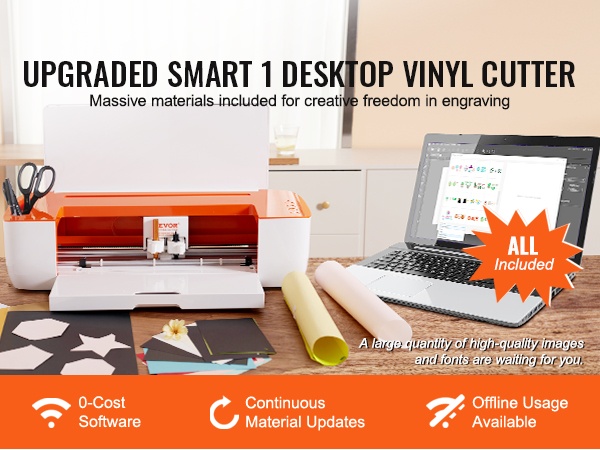 Monipuolinen vinyylileikkuri, jolla luot helposti omia kortteja, sisustuselementtejä, tarroja ja kylttejä. Laite tarjoaa langattoman Bluetooth-yhteyden, automaattisen teränpaineen säädön sekä laajan kirjaston valmiita kuvia ja fontteja, joita voi käyttää myös ilman internet-yhteyttä.