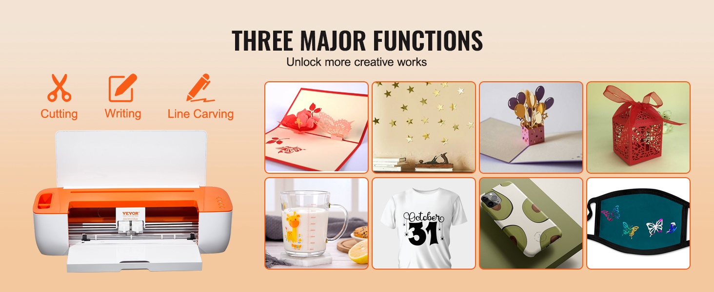 Voit käyttää erilaisia teriä ja työkaluja leikkaamiseen, kirjoittamiseen tai taittoviivojen tekemiseen. Terät soveltuvat yli 100 eri materiaalille, kuten vinyylille, kartongille ja lämpösiirtomateriaaleille. Soveltuu esimerkiksi mainosteippauksiin, sisustukseen, askarteluun, lämpösiirtotuotteiden valmisteluun, tarroihin ja kylttien tekoon.