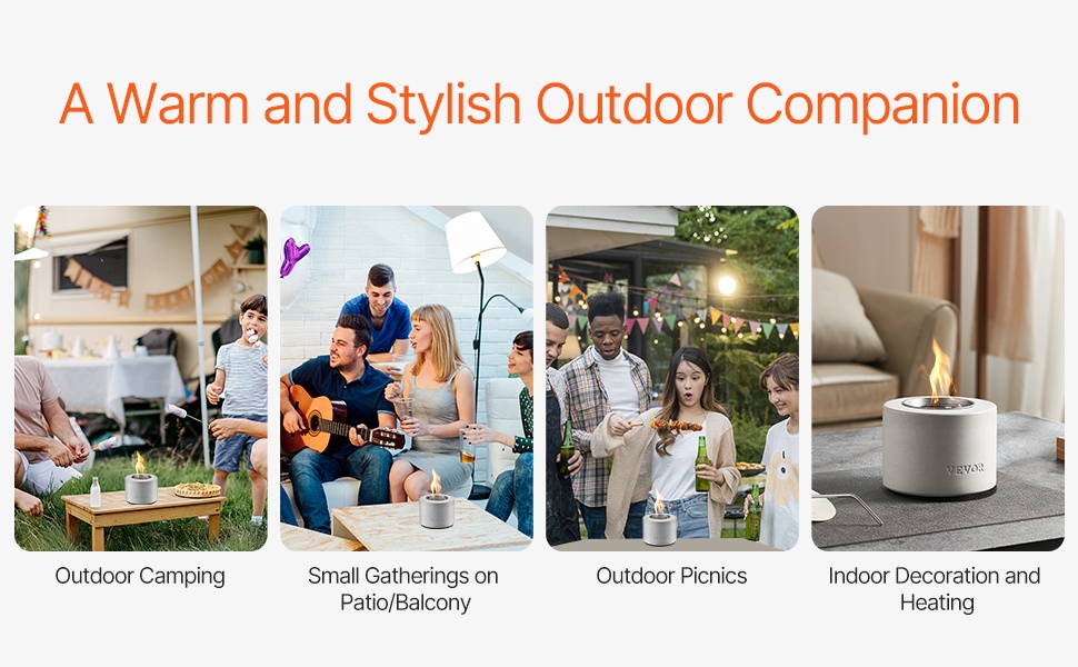 Pöytätakka on suunniteltu yksinkertaiseen käyttöön: aseta tulirengas jalustaan, lisää polttoaine, sytytä esimerkiksi sytyttimellä ja anna liekkien luoda tunnelmaa. Kun tuli on sammunut ja jäähtynyt, puhdistat laitteen nopeasti seuraavaa käyttökertaa varten. Kevyt rakenne ja mukana tuleva säilytyspussi helpottavat kuljettamista esimerkiksi leirintäalueelle tai mökille.