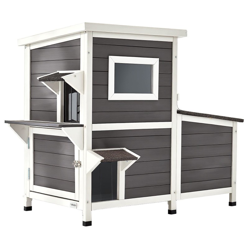 Tämä 2-kerroksinen puinen ulkokissatalo tarjoaa 3 kissalle suojaisan ja mukavan paikan ulkona ympäri vuoden. Kestävästä kuusipuusta valmistettu talo säilyy hyvin ulko-olosuhteissa ja tarjoaa tilavan sisätilan lepäämiseen ja oleskeluun.