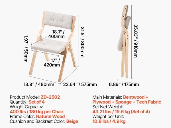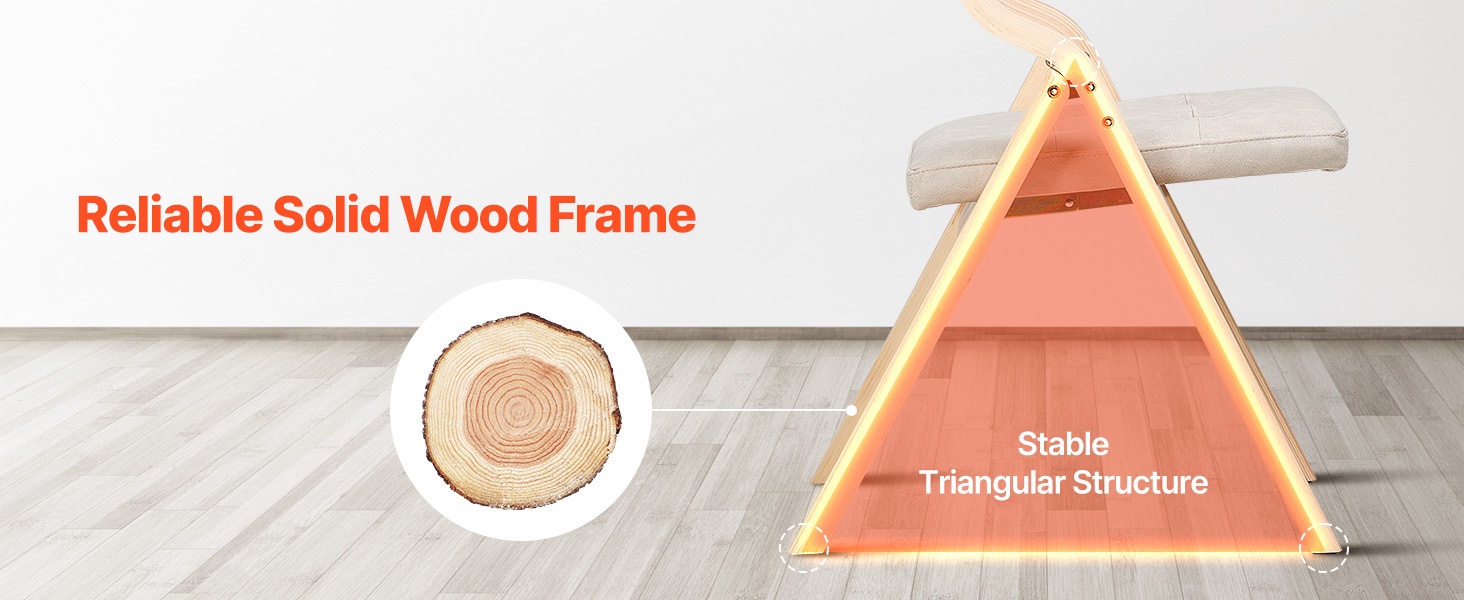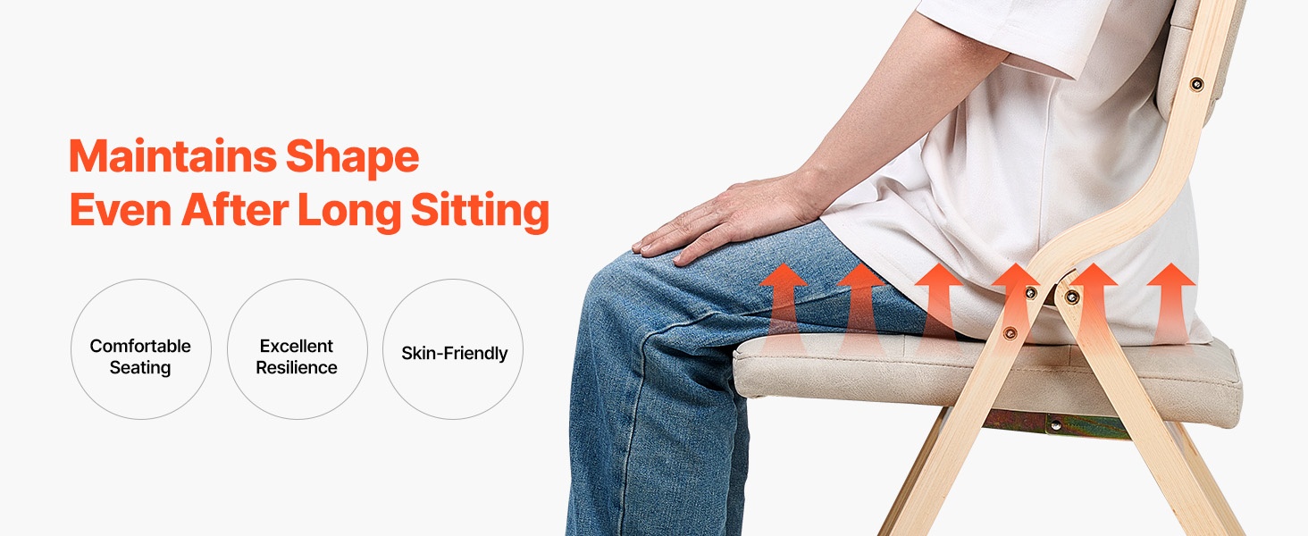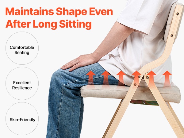 Puinen taittotuoli on valmistettu vakaasta puukehikosta, jossa on tukeva kolmiomainen rakenne. Se tarjoaa hyvän kantavuuden ja kestää pitkäaikaista käyttöä. Istuimessa on paksu vaahtopehmuste ja selkänojassa pehmuste, mikä lisää käyttömukavuutta.