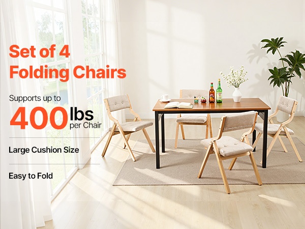 Puinen taittotuolisetti 4 kpl ruskea runko valkoiset pehmustetut istuimet