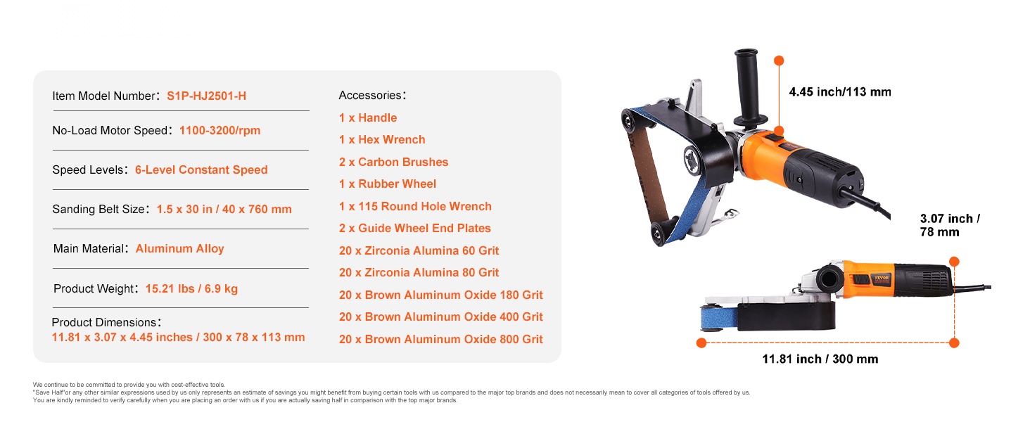 Putkihiomakone 1300 W 6-portainen nopeudensäätö alumiiniseosrunko 3 hiomanauhaa