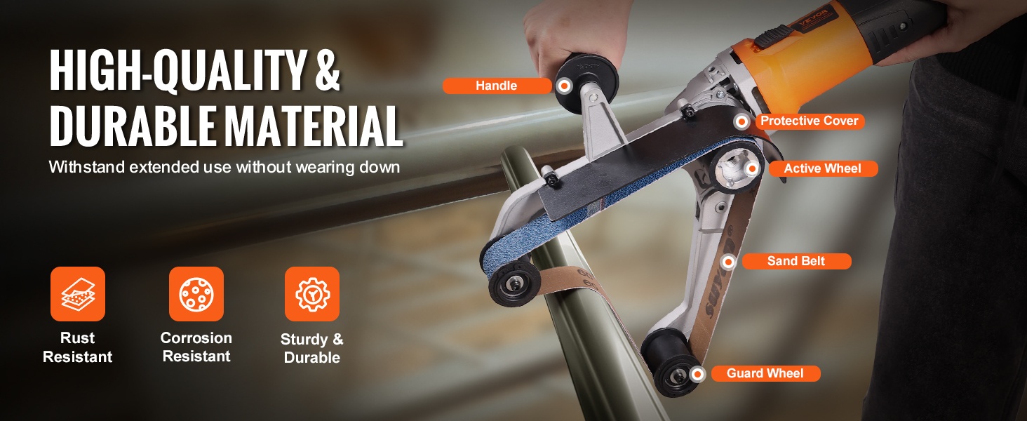 Runko on valmistettu laadukkaasta alumiiniseoksesta, joka tarjoaa hyvän suojan ruostetta, korroosiota ja naarmuja vastaan. Integroitu rakenne auttaa pitämään hiomanauhan vakaasti paikoillaan myös painetta käytettäessä, ja huolellinen pintakäsittely parantaa työkalun käyttömukavuutta.