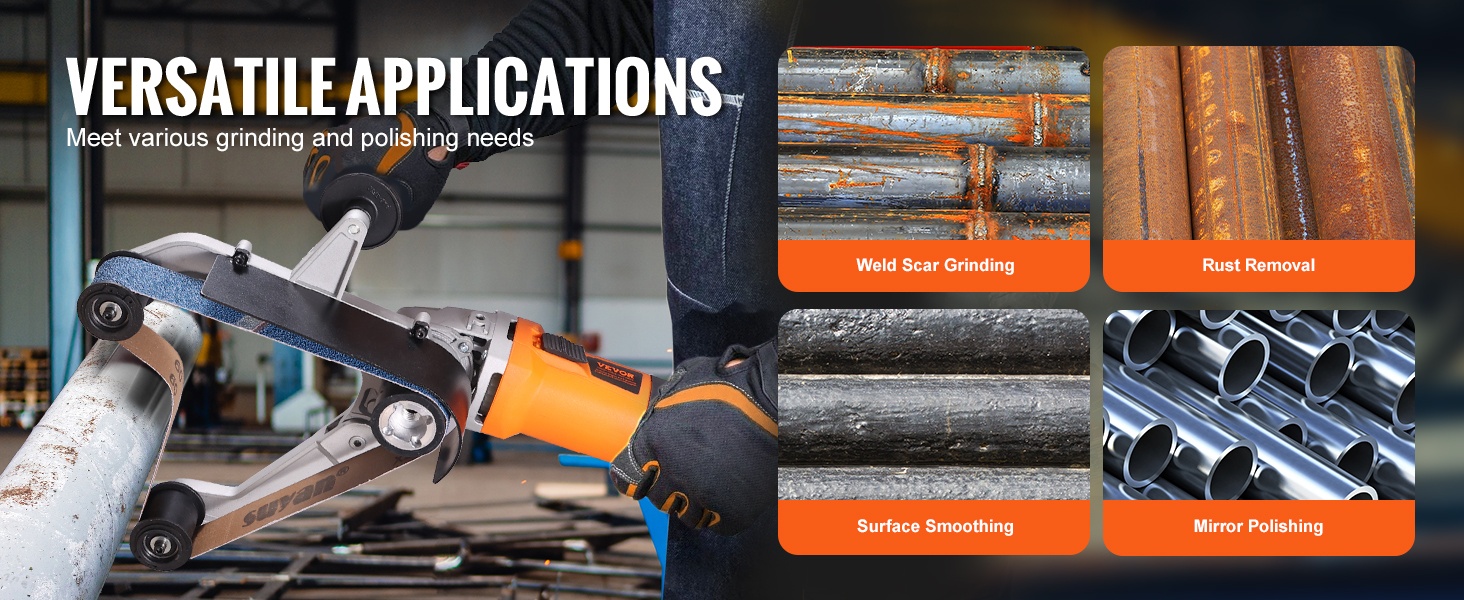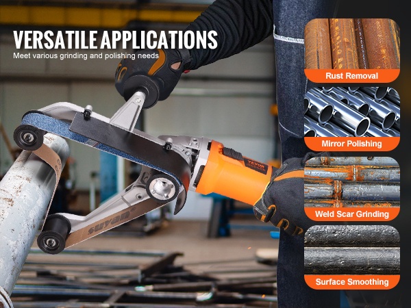 Laite sopii pyöreille putkille ja monille eri materiaaleille, kuten ruostumattomalle teräkselle, raudalle, alumiinille, muoville ja puulle. Sitä voi käyttää ruosteen poistoon, hiontaan, kiillotukseen, harjaukseen sekä peilipinnan aikaansaamiseen.