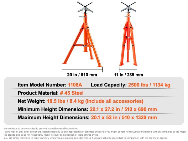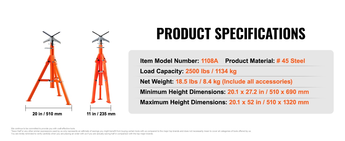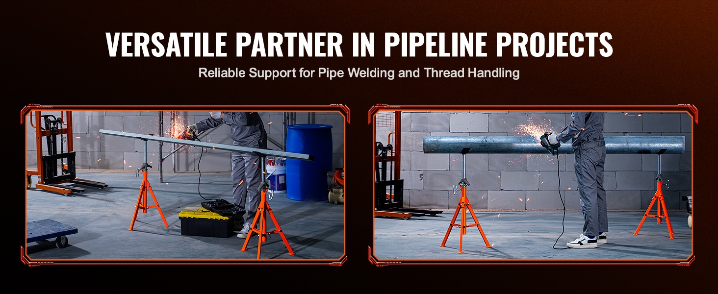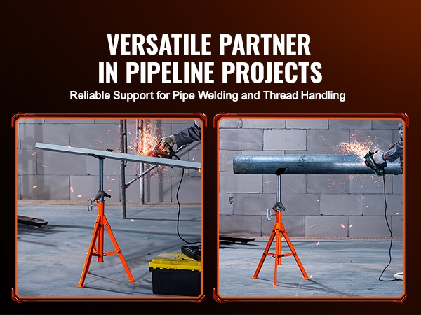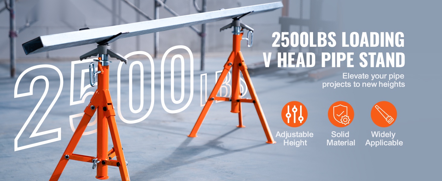 Tämä korkeussäädettävä V-päällinen putkiteline tarjoaa tukevan ja turvallisen alustan putkien käsittelyyn, hitsaukseen ja kierteitykseen. Teline sopii 1/2–12 tuuman (1.3–30.5 cm) putkille, ja sen kantavuus on jopa 2500 lbs / 1134 kg.