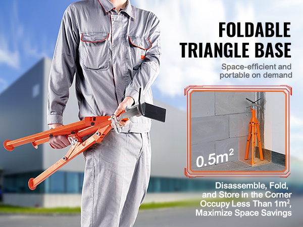 Kolmionmuotoinen jalusta on irrotettava ja taitettava, mikä helpottaa telineen kuljettamista ja varastointia. Teline vie vain vähän tilaa, kun se ei ole käytössä.
