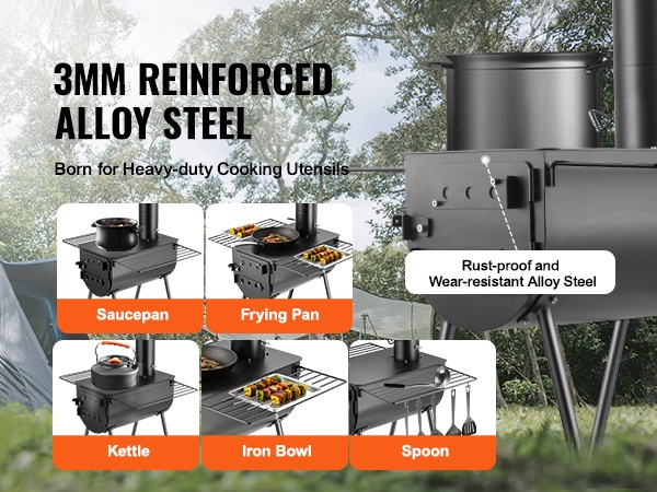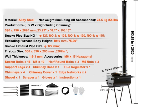 Kompakti ja kuljetettava puukamiina telttoihin ja ulkokäyttöön. Suuri tulipesä lämmittää tehokkaasti, ja savupelti sekä säädettävä ilmanvaihto auttavat hallitsemaan savua ja palamista miellyttävää leirielämää varten.