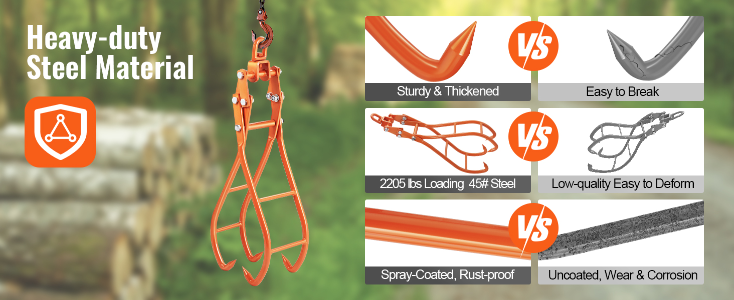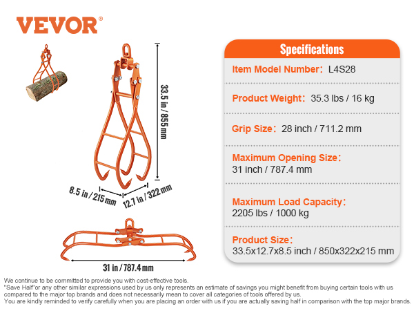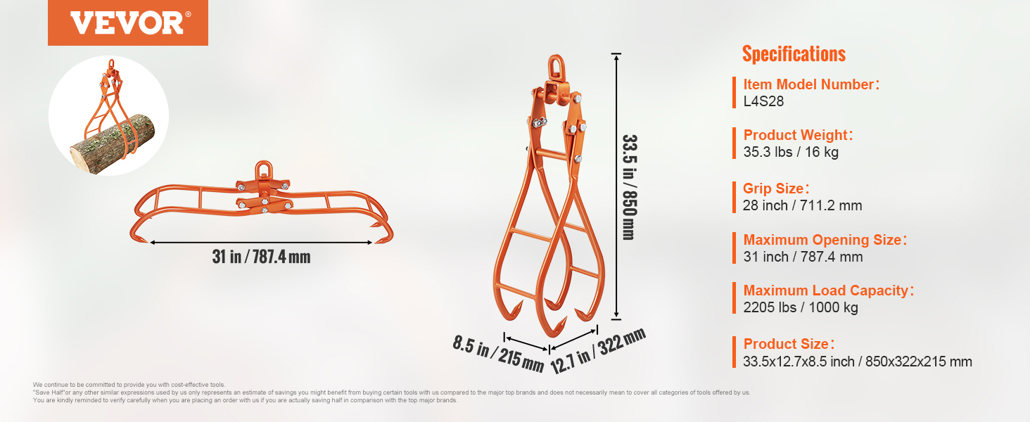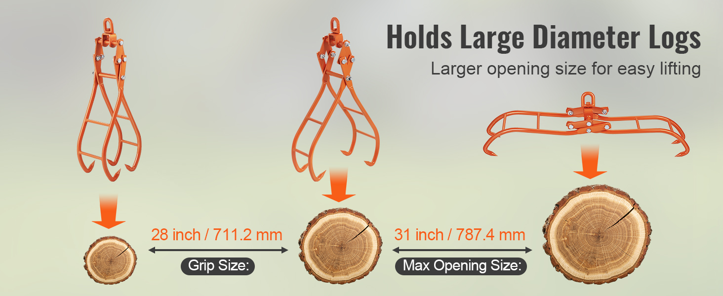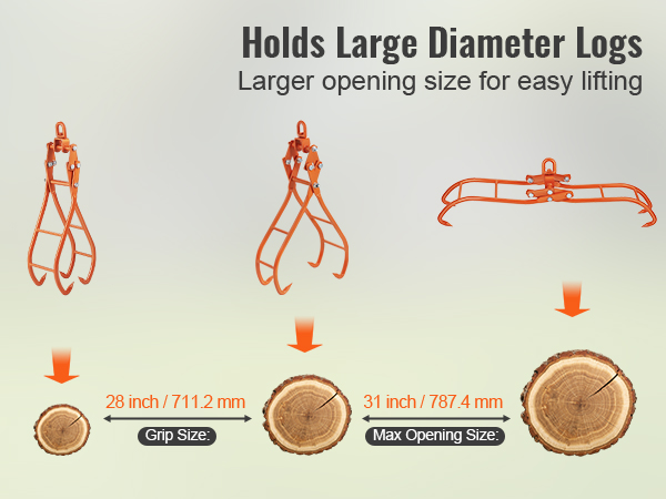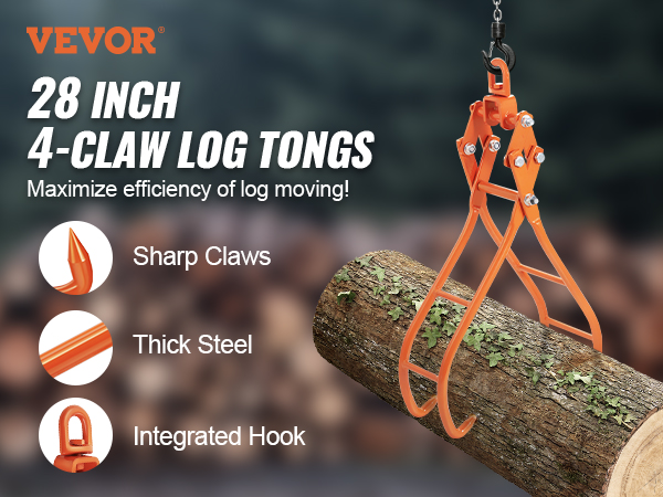 Maksimiavauma: 31 tuumaa, tartuntakoko: 28 tuumaa. Puukoukkukoura soveltuu suurten tukkien tehokkaaseen nostamiseen ja siirtämiseen. Sitä voidaan käyttää myös esimerkiksi heinäpaalien, kaapeleiden, kivien ja muiden raskaiden kohteiden käsittelyyn, mikä nopeuttaa ja helpottaa vaativia nosto- ja kuljetustehtäviä.