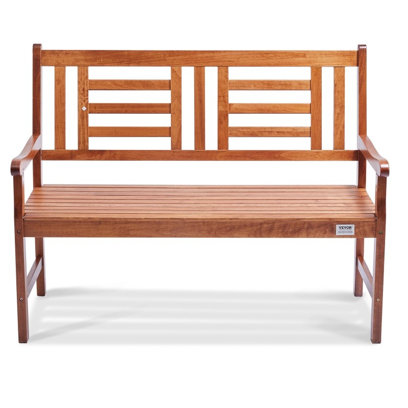 Puupenkki ulkokäyttöön 122 cm 1–3 henkilölle 318 kg kantavuus selkänojalla ja käsinojilla