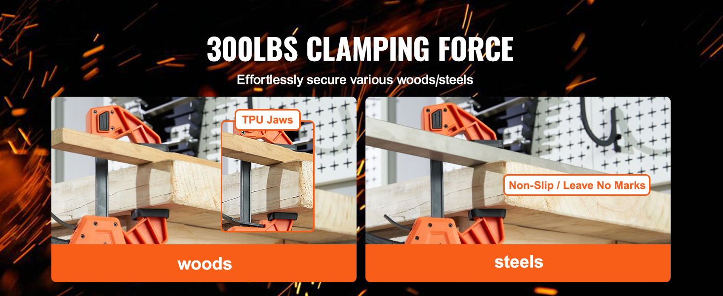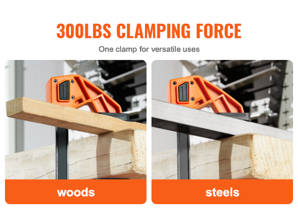 Puristimien enimmäispuristusvoima on 300 lb, soveltuen puu- ja terästyökappaleille.