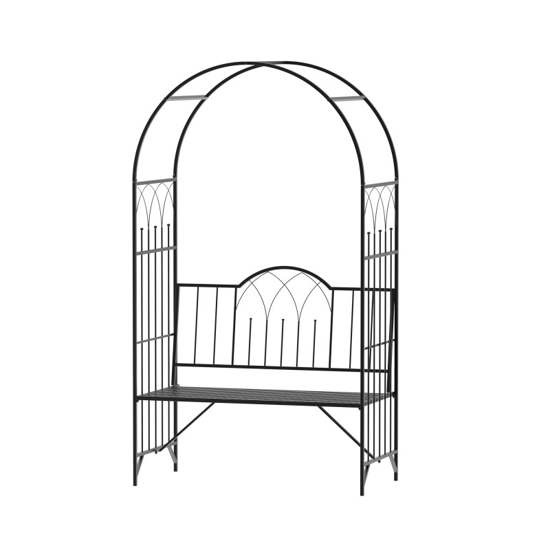 Puutarhakaari penkillä, metalli 115 x 59 x 203 cm, musta