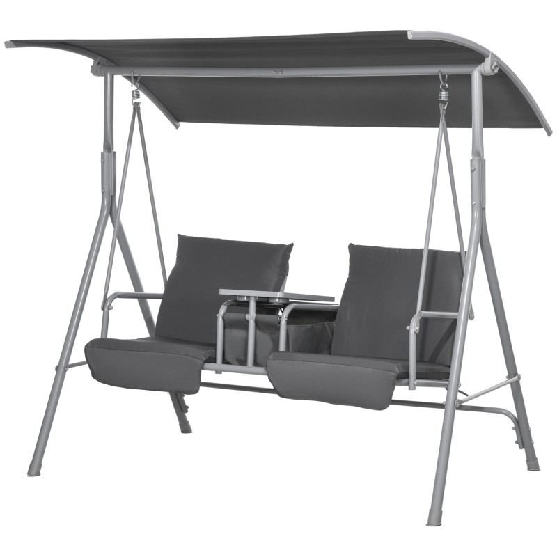 Puutarhakeinu 2 hengelle katoksella ja pöydällä, teräsrunko, 175x110x165 cm, musta