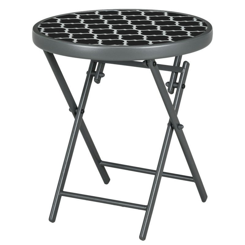 Puutarhan taittopöytä ulkokäyttöön, metalli ja karkaistu lasi, Ø45 x 50 cm, musta