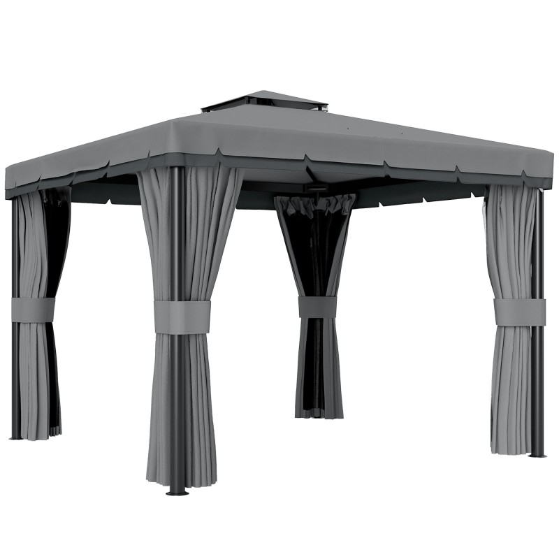 Puutarhapaviljonki ulkokäyttöön 3 x 3 m, vedenhylkivä, metallirunko, tuplakatto, tummanharmaa