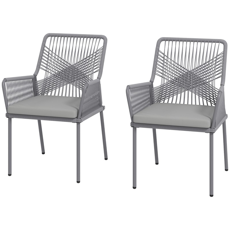 Puutarhatuolit 2 kpl terassille, rottinkijäljitelmä ja teräs, pestävät pehmusteet, tummanharmaa