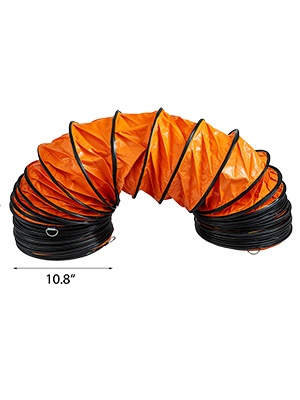 25FT PVC-joustokanava, halkaisija 10 tuumaa, on suunniteltu siirrettävään ilmanvaihtoon teollisissa ja muissa vaativissa kohteissa. Kaksikerroksinen, vahvistettu polyvinyyli on paloa hidastava, vedenpitävä ja kestää toistuvaa käyttöä. Kanava kiinnitetään puhaltimeen helposti mukana tulevien pikakiinnitteisten nailonköysien avulla.