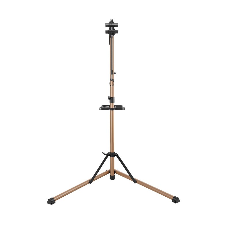 Pyörän korjausteline on käyttövalmis heti, kun se on avattu. Laaja nostokorkeuden säätöalue vastaa sekä aikuisten että lasten huoltokorkeustarpeisiin, mikä tekee työskentelystä ergonomisempaa.