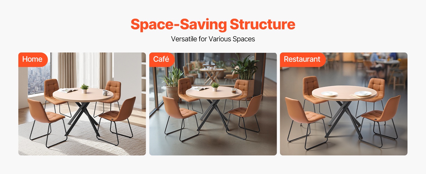 Paksut metalliputkesta valmistetut jalat ja runko antavat ruokailuryhmälle tukevan ja vakaan rakenteen. Ruokapöydän enimmäiskantavuus on 260 lbs / 117.9 kg, ja jokainen tuoli kestää 330 lbs / 149.7 kg. Voit nauttia aterioista ilman huojuvaa tunnetta.