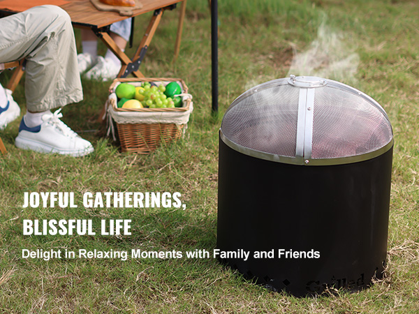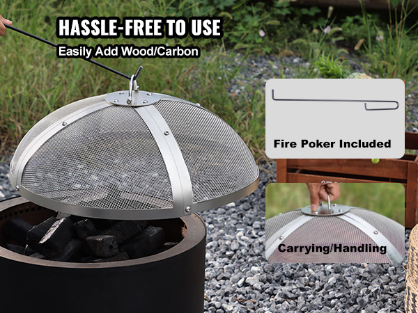 Yläosassa oleva rengaskahva helpottaa kannen nostamista ja siirtämistä. Voit nostaa kannen pois tulen sytyttämistä tai puun lisäämistä varten ja asettaa sen takaisin, kun haluat rajoittaa kipinöitä.