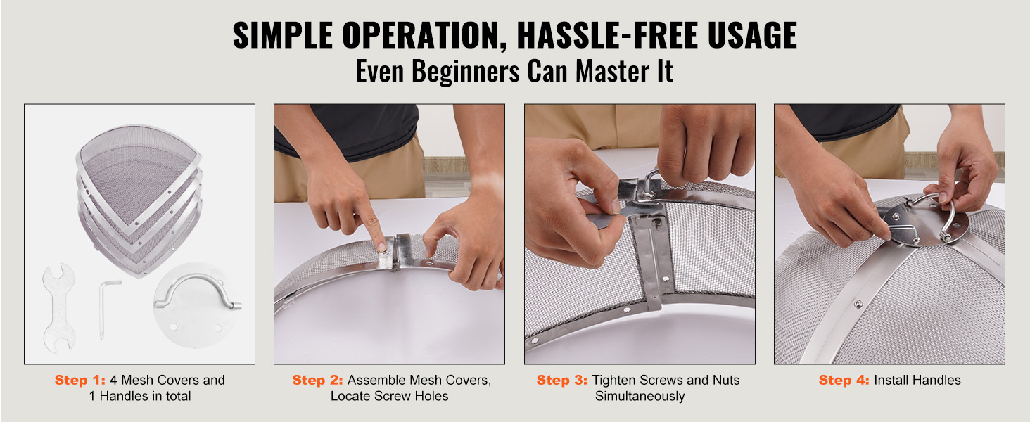 Rakenne on suunniteltu nopeaan käyttöönottoon. Kannen kokoaminen onnistuu ruuvimeisselillä, ja osat muodostavat tukevan, 4-osaisen kokonaisuuden tulipesän päälle.