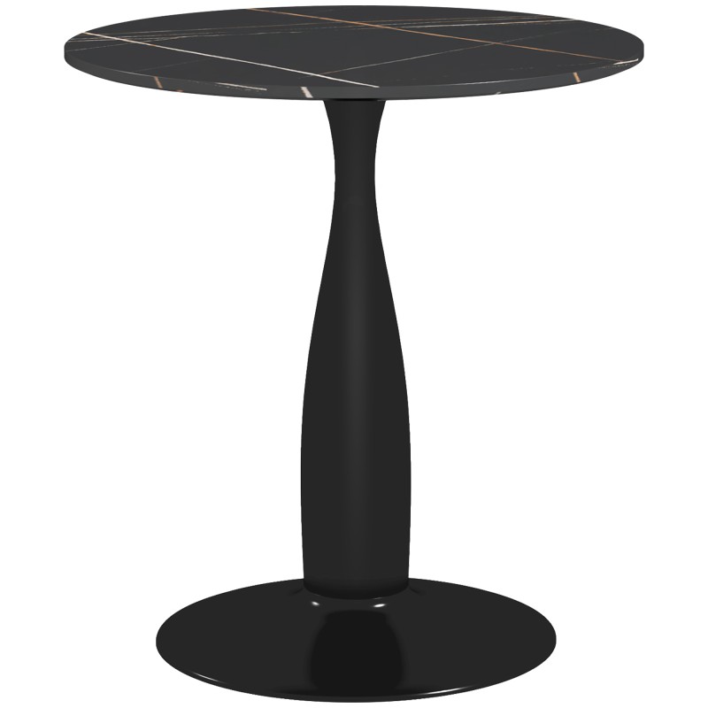 Tämä pieni pyöreä ruokapöytä sopii täydellisesti kahden hengen arkihetkiin ja rennon tyylikkääseen sisustukseen. Musta, marmorikuvioitu kansi ja siro jalka tekevät pöydästä huomaamattoman tyylikkään lisän keittiöön, ruokailutilaan tai pieneen oleskelunurkkaan.