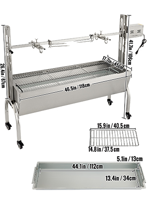 Pyörivä paistogrilli KL-003, ruostumaton teräs, 60 kg, 40W moottori, säädettävä vartaan korkeus ulkogrillaukseen