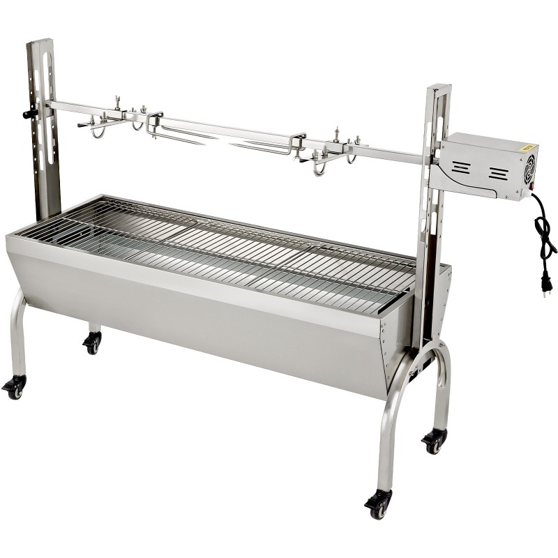 Sähköinen roottisserie-grilli ruostumaton teräs 35-tuumainen lukittavat pyörät ulkokäyttöön
