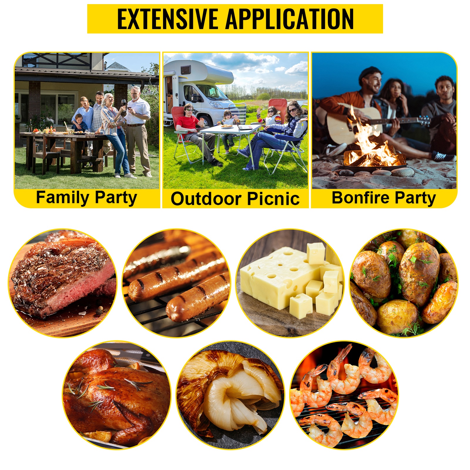 Pyörivä grillipaistovaunu sopii pihajuhliin, leirintäalueille, ravintoloiden pihoille ja muihin ulkotilaisuuksiin. Grillissä voidaan kypsentää esimerkiksi karitsaa, porsasta, kalkkunaa, naudanlihaa, kalaa, vihanneksia ja muita ruokia hiilillä.