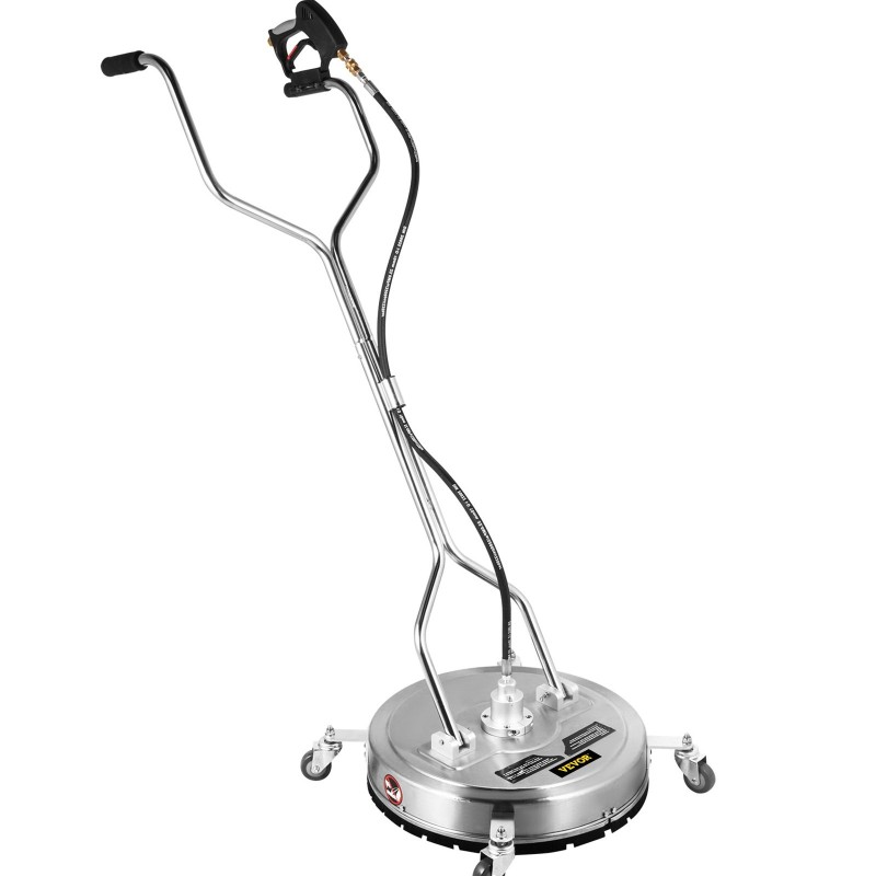 Tämä ruostumattomasta teräksestä valmistettu pyörivä pintapesuri on suunniteltu käytettäväksi painepesurin kanssa laajoilla lattiapinnoilla. 21-tuumainen työleveys, kolme suihkusuutinta ja suuri enimmäispaine auttavat poistamaan sitkeää likaa tasaisesti ja nopeasti. Neljä kääntyvää pyörää ja ergonominen kahva tekevät työskentelystä kevyempää sekä kotikäytössä että ammattimaisessa siivouksessa.