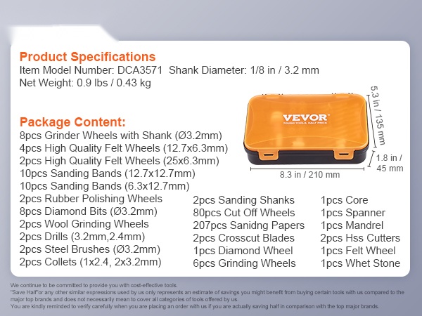 Tarvikkeet on valmistettu kestävistä, laadukkaista materiaaleista ja ne sopivat useimpiin markkinoilla oleviin pyöriviin työkaluihin, joten voit hyödyntää sarjaa monenlaisissa kodin kunnostus- ja tee se itse -projekteissa.