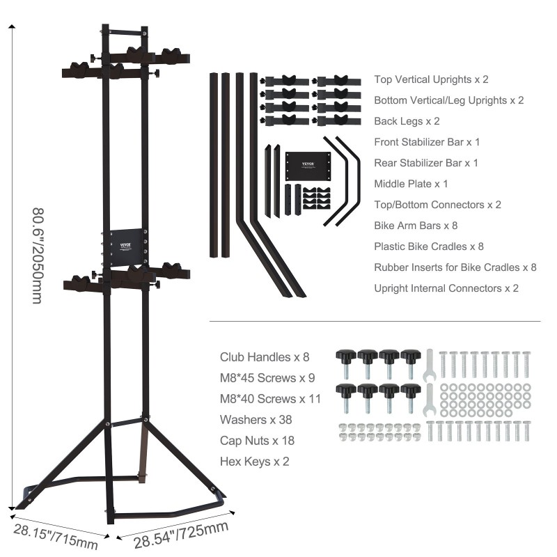 Tämä vapaasti seisova pystysuora pyöräteline helpottaa jopa 4 pyörän säilyttämistä pienessäkin tilassa. Säädettävien ylä- ja alavarsien ansiosta teline sopii erilaisille pyörämalleille, ja pehmeä TPR-pehmuste suojaa runkoa naarmuilta. Kestävä hiiliteräsrakenne pitää telineen tukevasti pystyssä ilman porausta seinään.