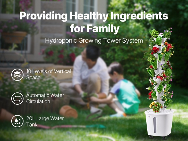 Tämä 10-kerroksinen pystysuora vesiviljelytorni on valmistettu PP-materiaalista ja soveltuu hyvin vihanneksille ja kukille. 20L vesisäiliö ja kiertävä kastelujärjestelmä tukevat kasvien tervettä kasvua. Älykäs pistorasia mahdollistaa tarkan ohjauksen valolle ja vesipumpun toiminta-ajoille, joten käyttö on helppoa ja täysin mullatonta – kätevä tapa rakentaa oma sisäpuutarha.