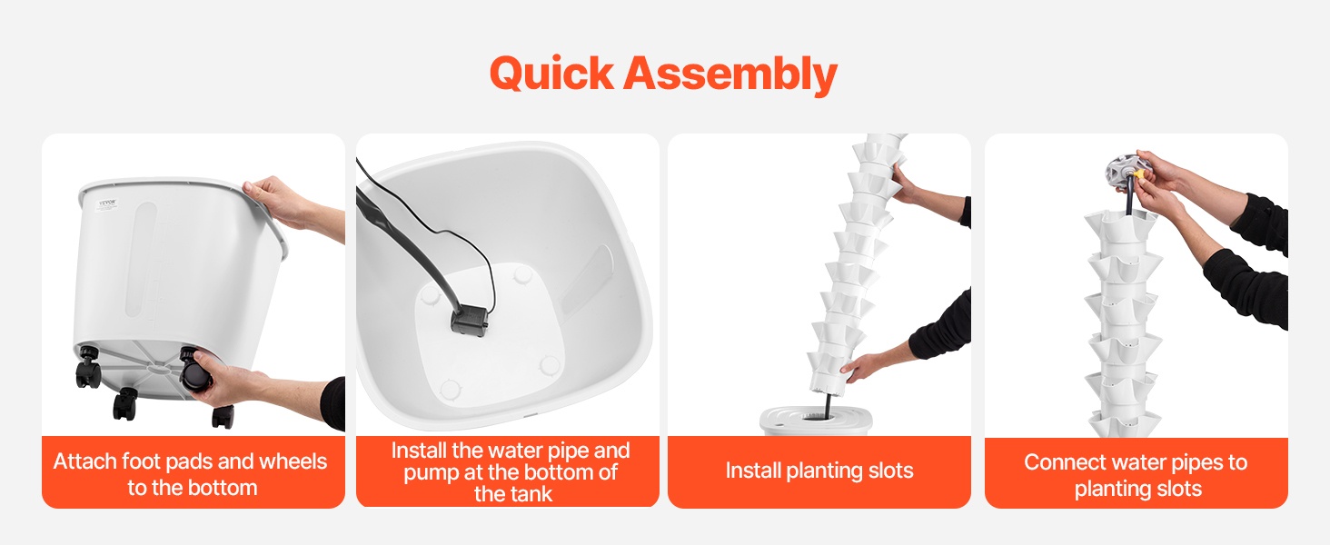 Modulaarisen rakenteen ja mukana tulevien tarvikkeiden ansiosta torni on helppo koota ilman työkaluja tai monimutkaisia vaiheita. Se sopii myös aloittelijoille, jotka haluavat kokeilla vesiviljelyä ja päästä nopeasti istuttamisen pariin.