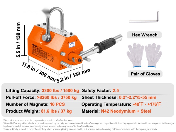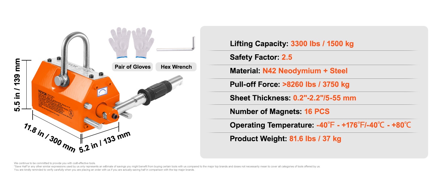 Tämä pysyvä nostomagneetti on suunniteltu terästyökappaleiden turvalliseen ja tehokkaaseen käsittelyyn. Vahvat N42-neodyymimagneetit mahdollistavat jopa 660 lbs/300 kg kuorman nostamisen ilman erillistä virtalähdettä, mikä tekee laitteesta käytännöllisen valinnan työpajoihin, korjaamoihin ja teollisuuskohteisiin.