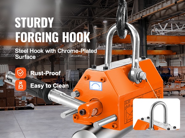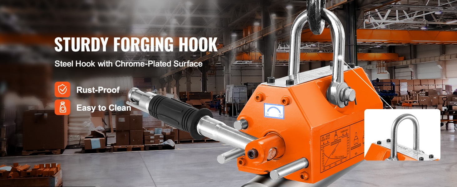 Pysyvässä magneettinostimessa on raskaan käytön kromattu koukku. Rakenne on suunniteltu minimoimaan murtumisen, vääntymisen ja ruostumisen riskiä toistuvassa käytössä.