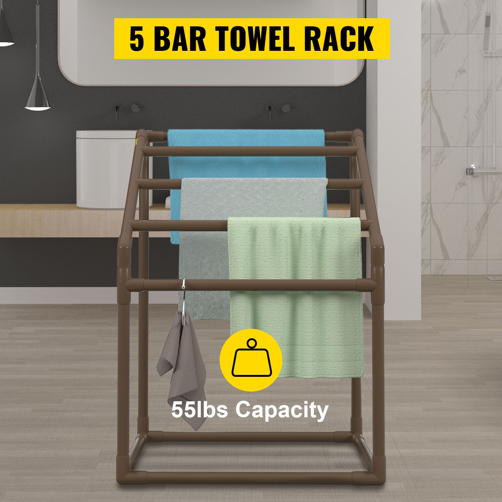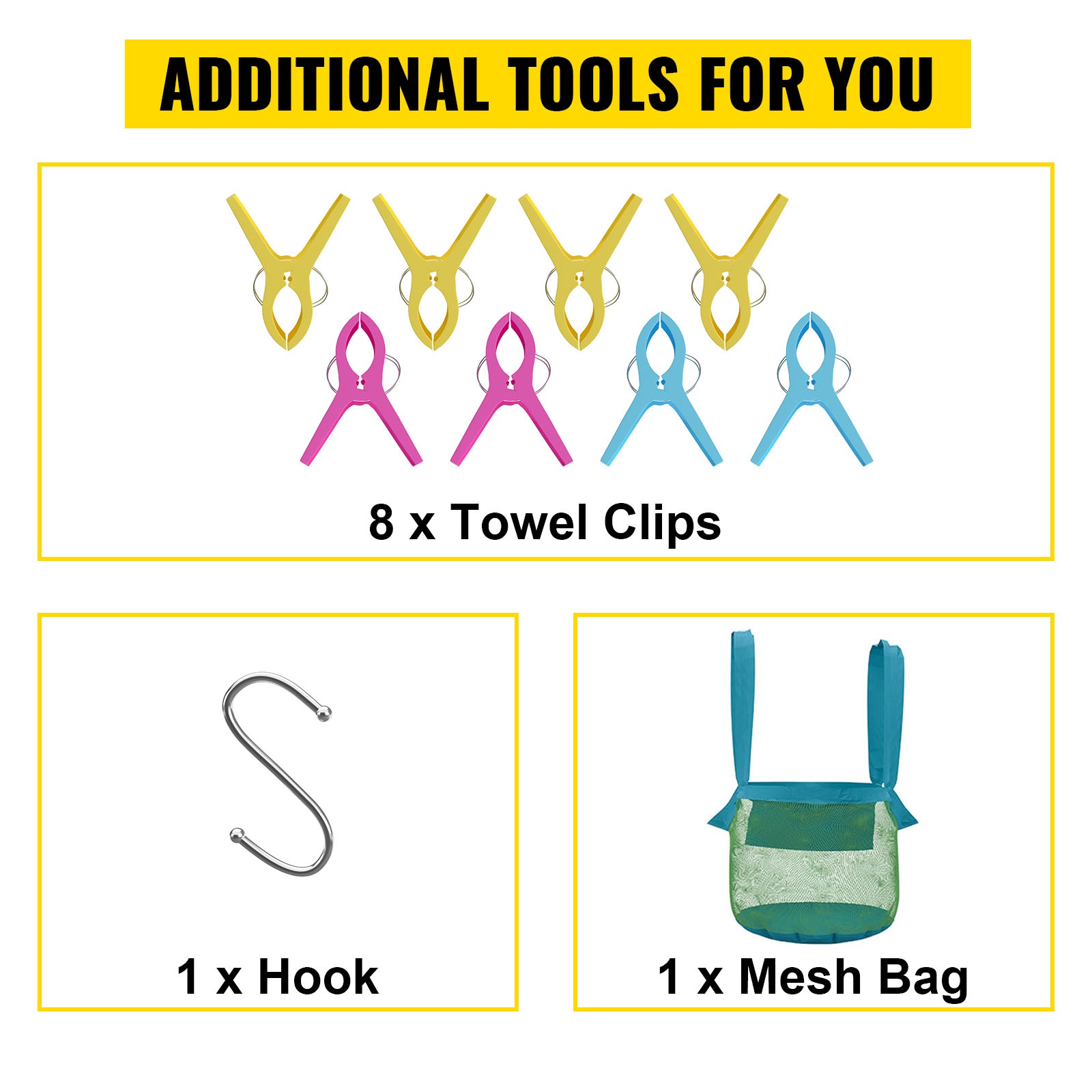 - 5 poikkitankoa pyyhkeille ja uima-altaan varusteille