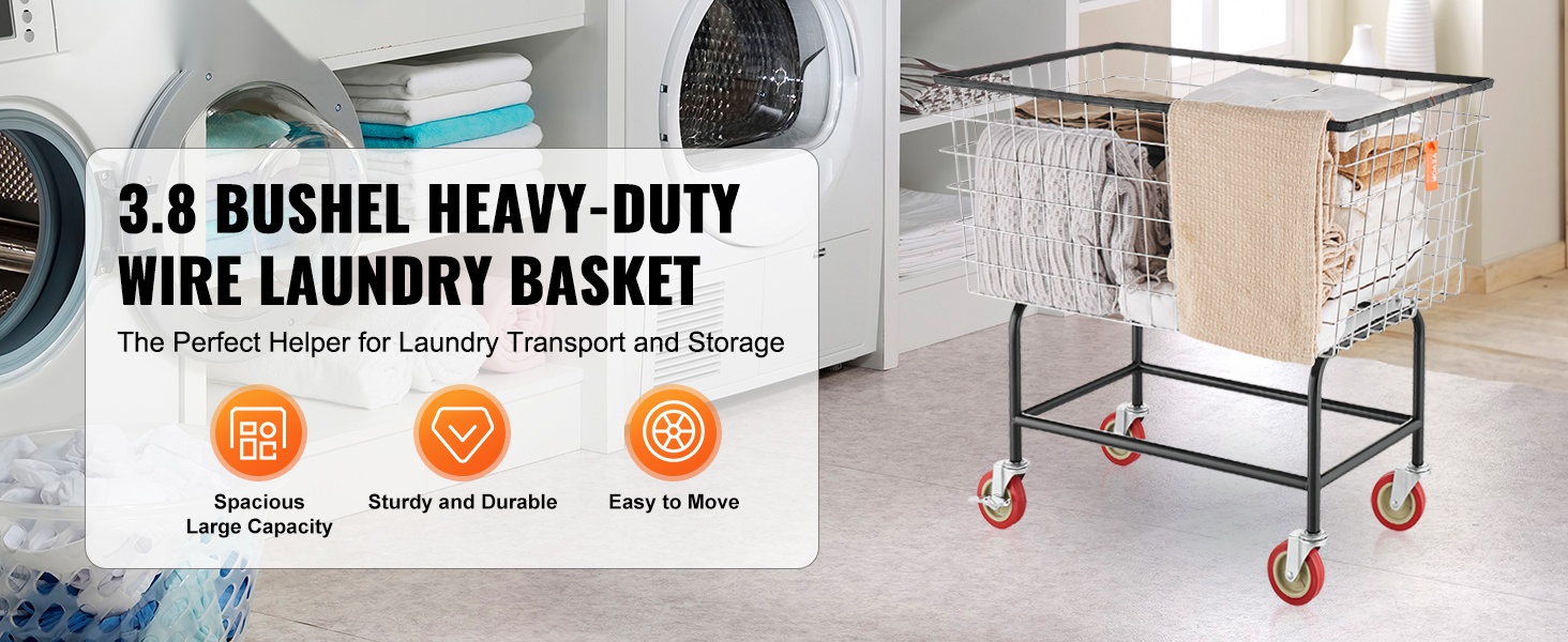 Tämä teräksinen pyykkikärry on suunniteltu suurille pyykkimäärille kotiin ja ammattikäyttöön. Tukeva teräsrunko, kromattu lankakori ja 5'' PP-pyörät tekevät liikkumisesta kevyttä myös täyden korin kanssa.