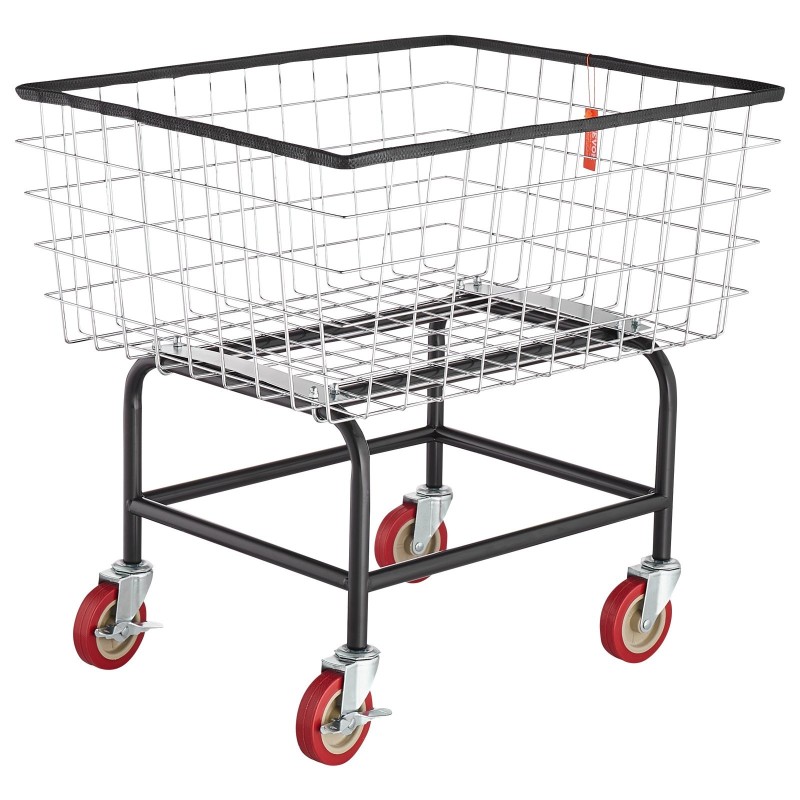 Tukeva teräksinen pyykkivaunu, jossa on lankakori ja pyörät. Korin tilavuus on 2.8 bushel / 100 L, joten se sopii hyvin sekä koti- että ammattikäyttöön, esimerkiksi pesuloihin, hotelleihin ja hoivakoteihin. Vaunussa on kestävä teräsrunko ja helppo liikuteltavuus 4" kääntyvien pyörien ansiosta.