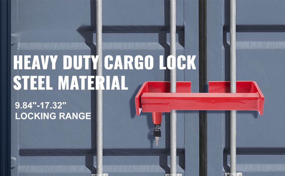 Säädettävä rahtikontin lukko pitää konttien ja puoliperävaunujen ovet tukevasti suljettuina kuljetuksen ja varastoinnin aikana. Lukko on valmistettu teräksestä, pinnoitettu punaisella jauhemaalilla ja varustettu jousilukolla sekä 2 avaimella. Säädettävä pituus mahdollistaa käytön eri kokoisissa konteissa.