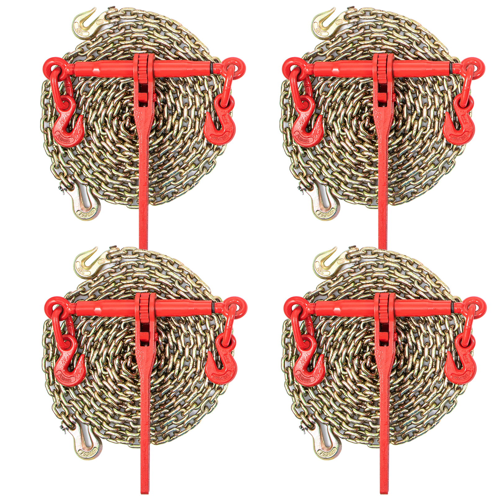 Tämä 4 kappaleen räikkäketjunkiristinsarja on suunniteltu raskaiden kuormien kiinnitykseen, kuljetukseen ja hinaamiseen. Kuormansitojan sallittu työkuorma on 5400 lbs, ja mukana tulevat Grade 80 -ketjut tarjoavat luotettavan ja tasaisen kiristyksen vaativissakin olosuhteissa.