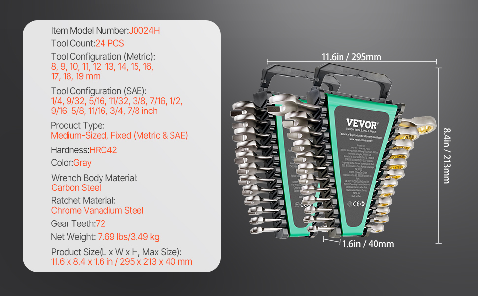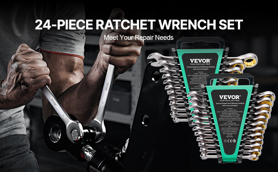 Räikkälenkkiavainsarja, joka kattaa sekä metriset mitat 8 mm–19 mm että SAE-koot 1/4"–7/8". Sarja sopii hyvin yleisiin kotitaloustöihin, autokorjauksiin ja erilaisiin huoltotöihin. Pakkaukseen sisältyy yhteensä 24 avainta sekä säilytysteline, jonka avulla työkalut pysyvät järjestyksessä ja helposti mukana.